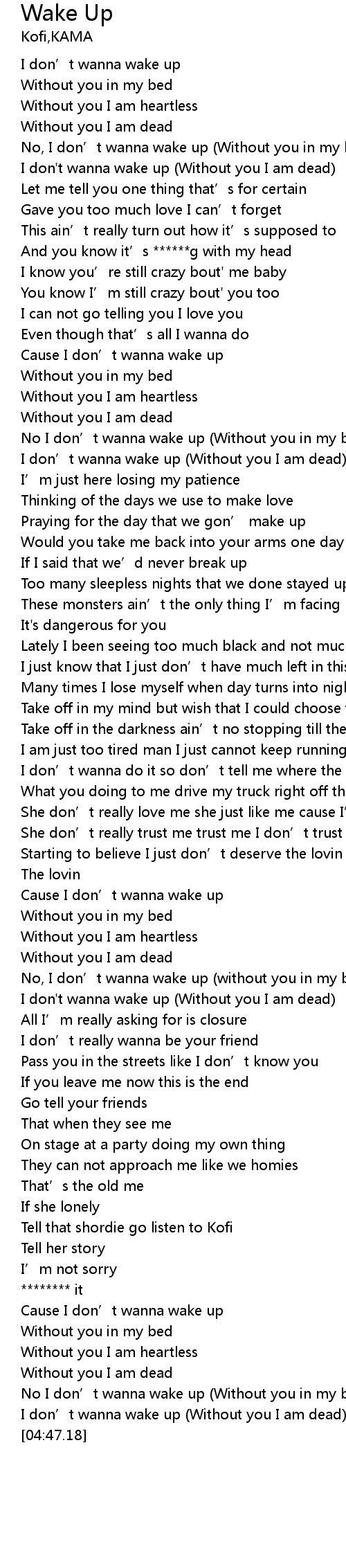 | [00:29.05] | No, I don’t wanna wake up (Without you in my bed) |