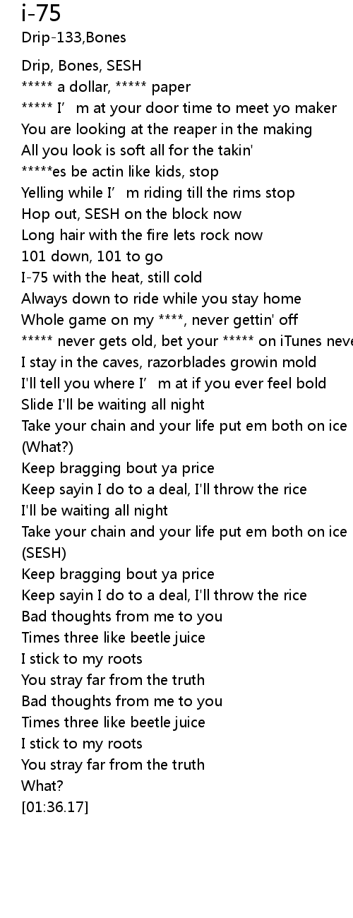 | [00:48.88] | I75 with the heat, still cold |