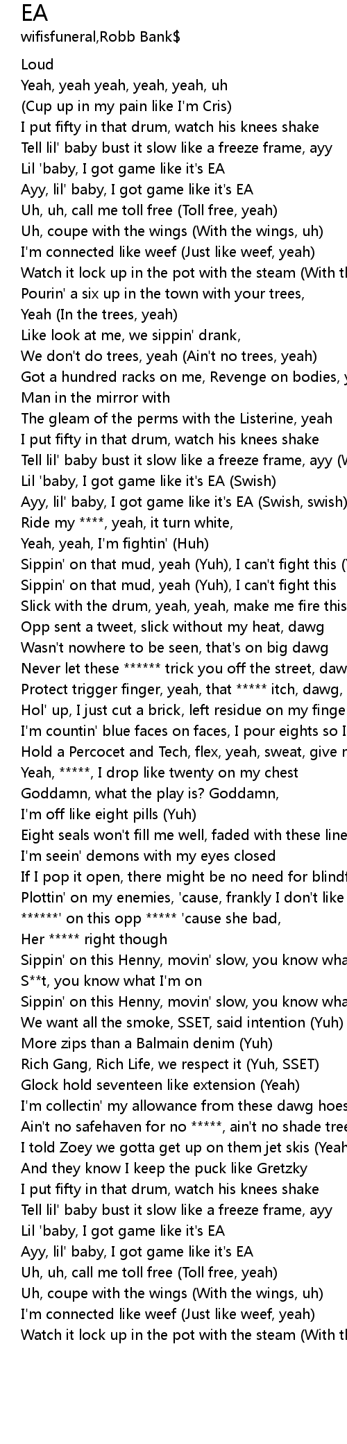 Ayy, lil' baby, I got game like it's EA (Swish, swish) |