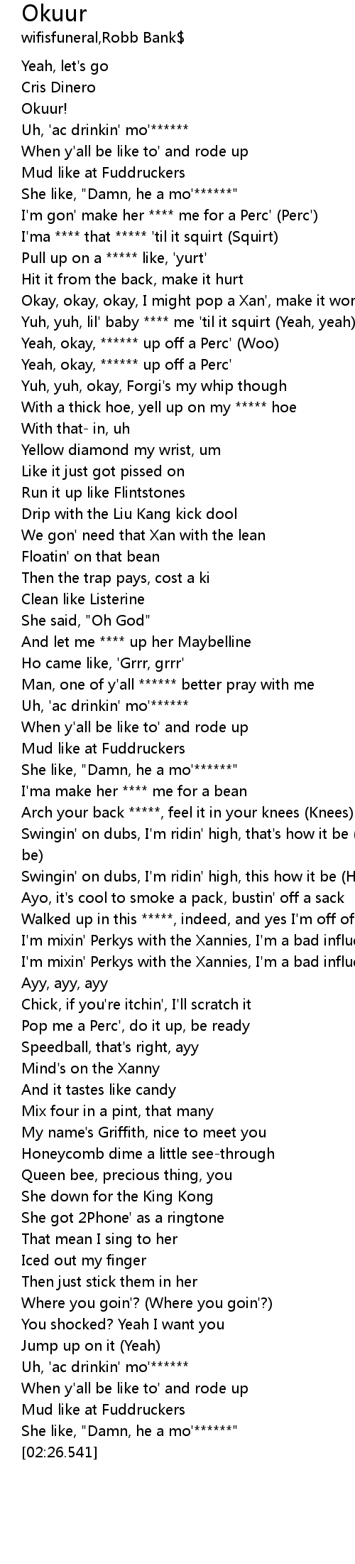 Yeah, okay, ****** up off a Perc' (Woo) |