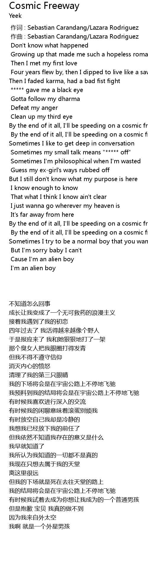 | [02:27.52] | By the end of it all, I' ll be speeding on a cosmic freeway |