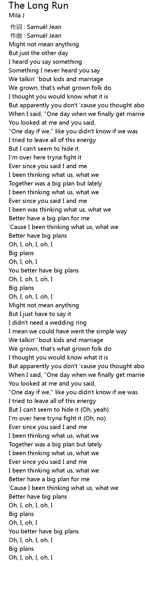 | [00:31.46] | We talkin' ' bout kids and marriage |