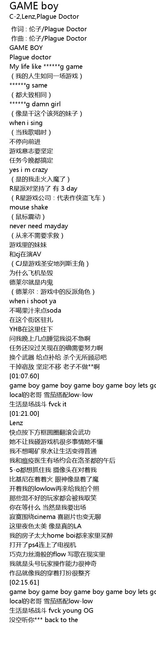| [01:11.39] | game boy game boy game boy game boy lets go |