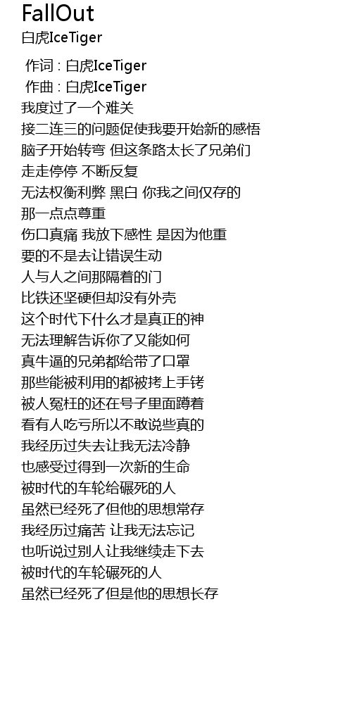 | [00:00.000] | 作词 : 白虎IceTiger |