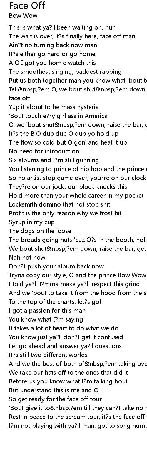 Tell ?em O, we bout shut ?em down, raise the bar, get ready for the face off