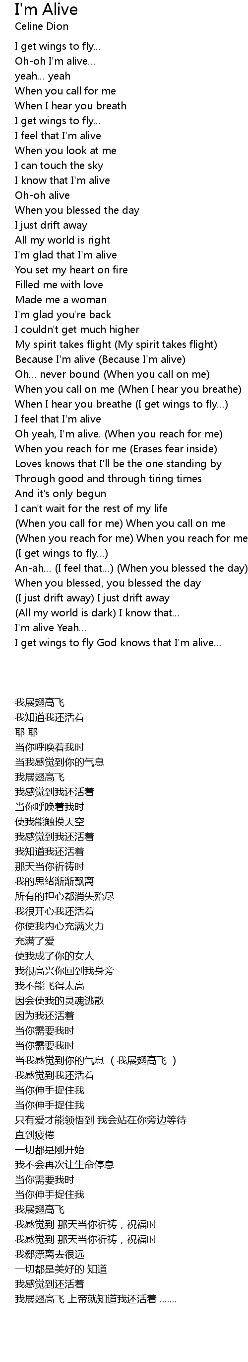 | [03:16.470] | I get wings to fly God knows that I' m alive |