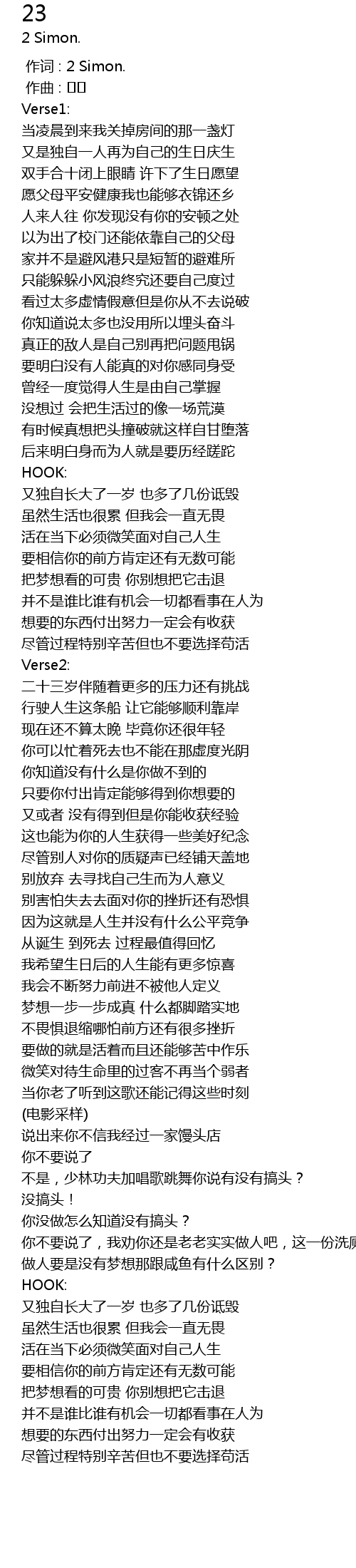 | [01:35.387] | 二十三岁伴随着更多的压力还有挑战 |