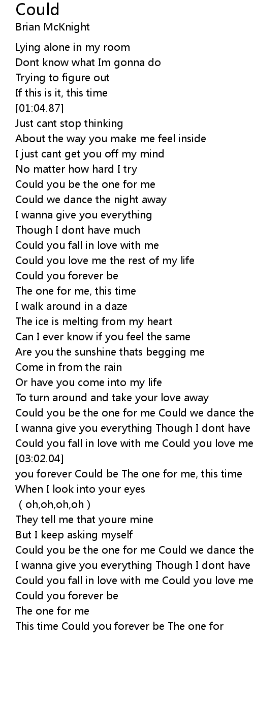 | [02:35.38] | Could you be the one for me Could we dance the night away |