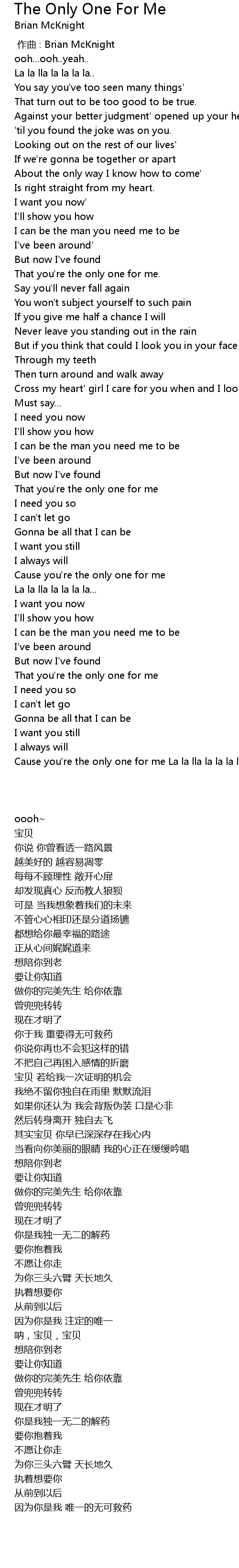 | 歌曲 | The Only One For Me |