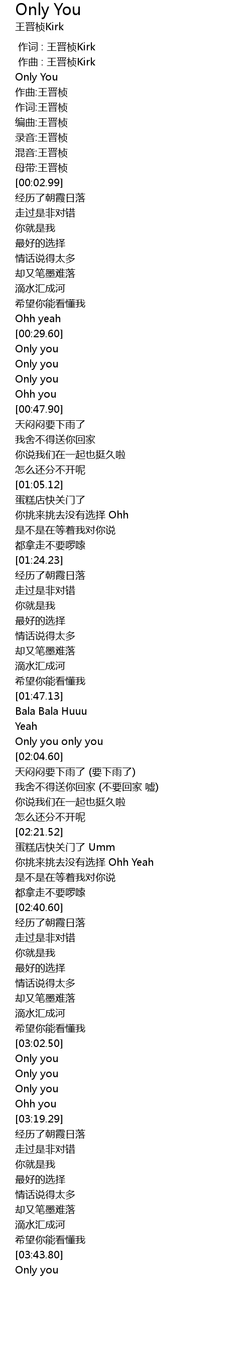 | [03:02.76] | Only you |