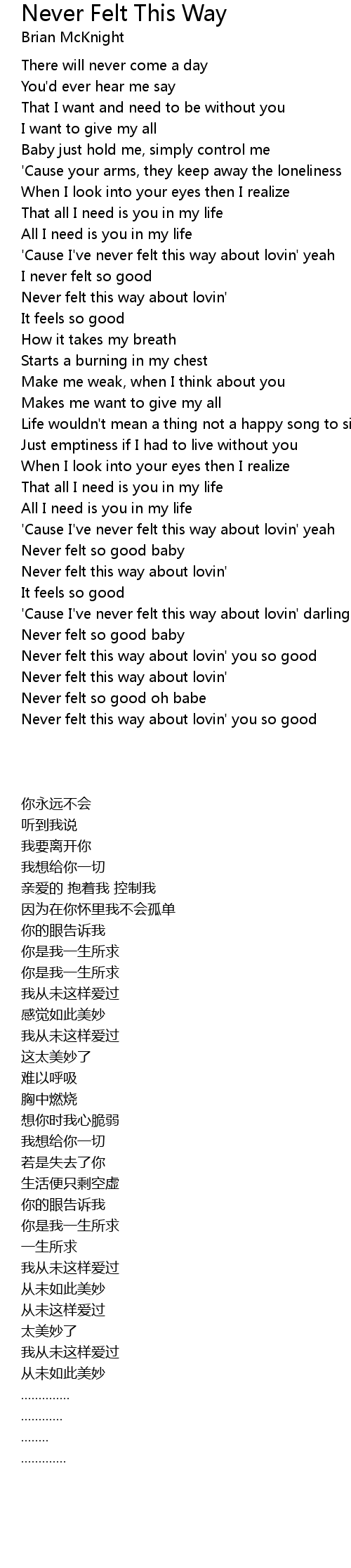 'Cause I've never felt this way about lovin' yeah |