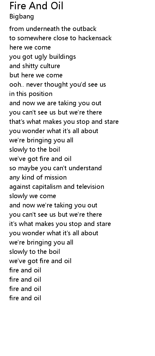 we've got fire and oil |