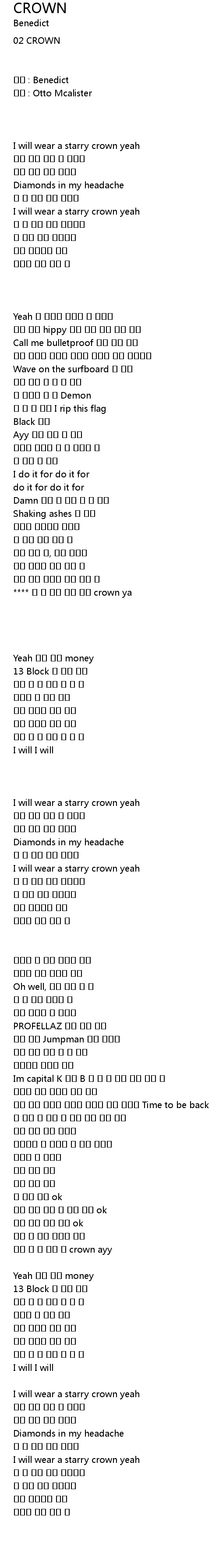 작사 : Benedict