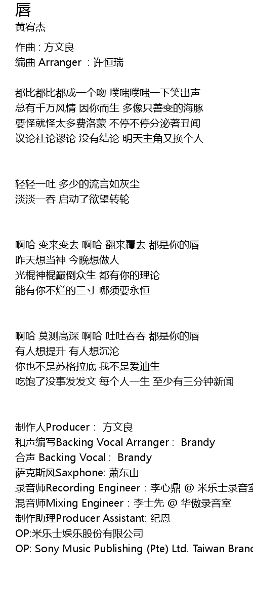 | OP: Sony Music Publishing (Pte) Ltd. Taiwan Branch |