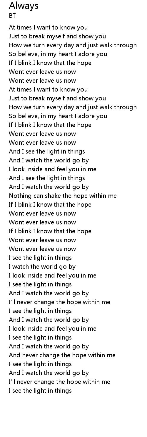 If I blink I know that the hope |