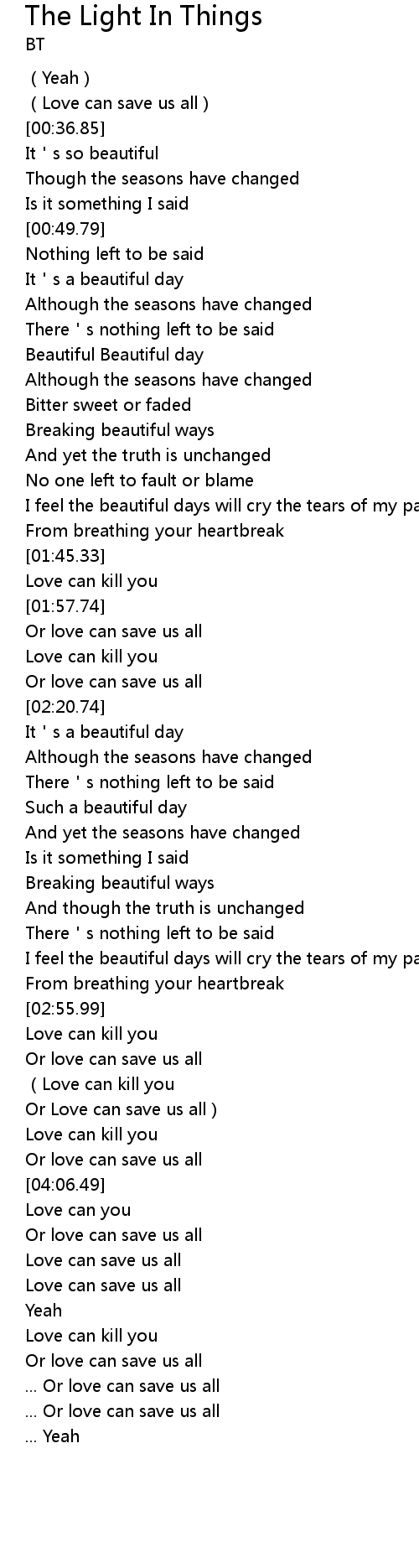 | [01:23.52] | Beautiful Beautiful day |