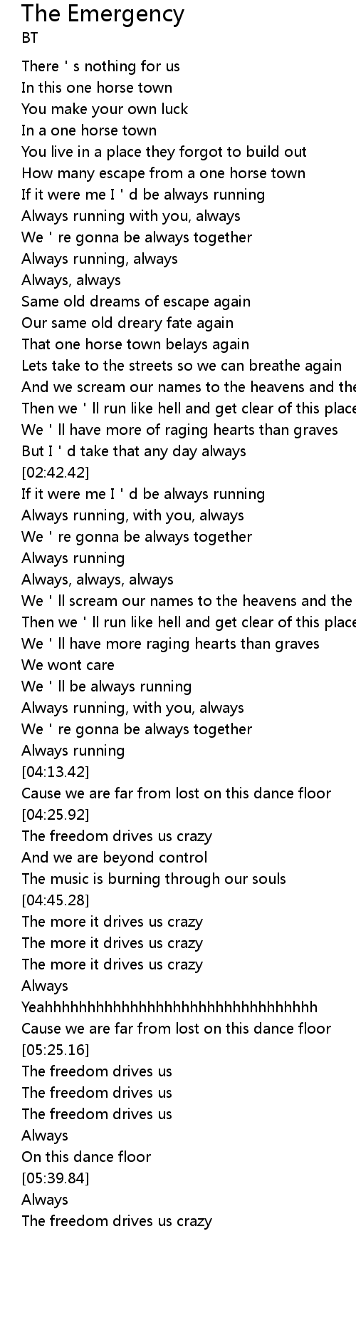 | [02:10.61] | Lets take to the streets so we can breathe again |