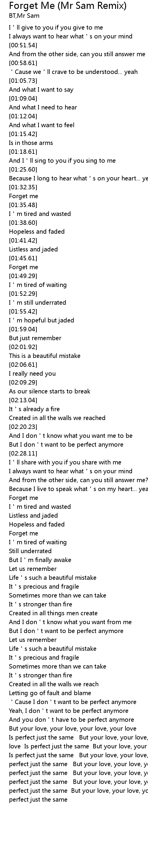 | [03:08.15] | Forget me |