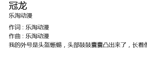 | 我的外号是头盔蜥蜴,头部鼓鼓囊囊凸出来了,长着像扇子般的冠子,长着像帽子一样的冠子,即使迷路也能找到路,小小的声音很快就能找到。 |