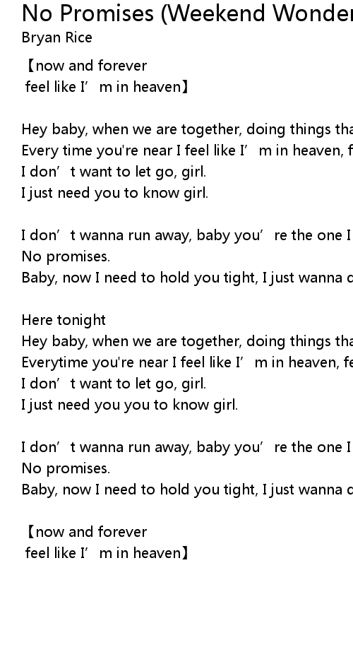 | 歌曲 | No Promises (Weekend Wonderz Club Mix) |