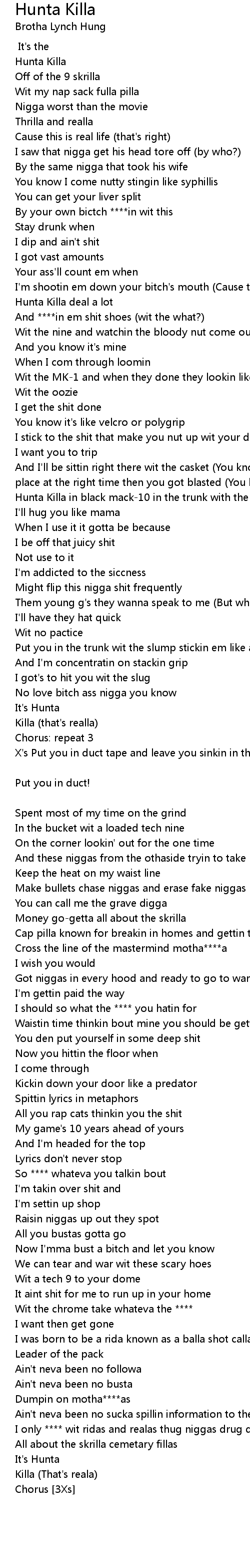 X's Put you in duct tape and leave you sinkin in the river (Hunta Killa! Killa!)