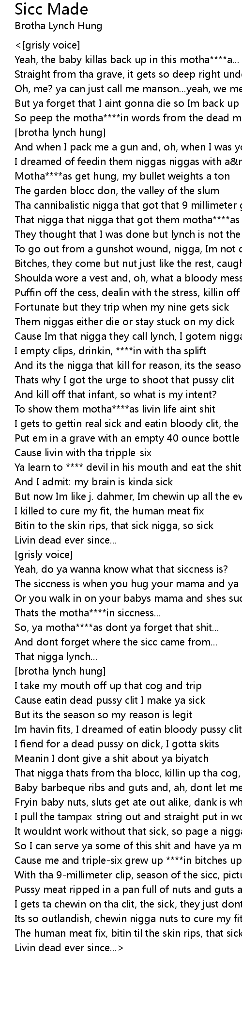 The human meat fix, bitin til the skin rips, that sick nigga, so sick |