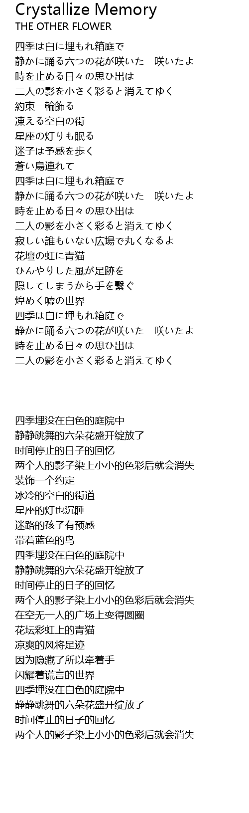| 歌曲 | Crystallize Memory |