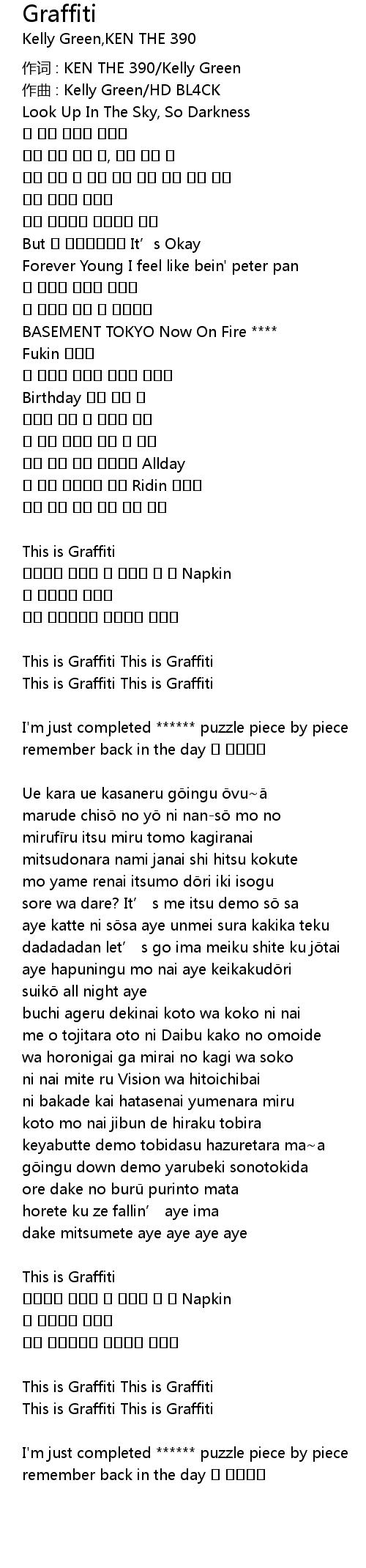 | 作词 : KEN THE 390/Kelly Green | |