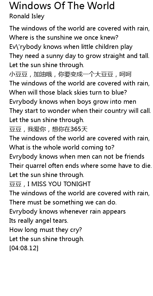 | 歌曲 | Windows Of The World |