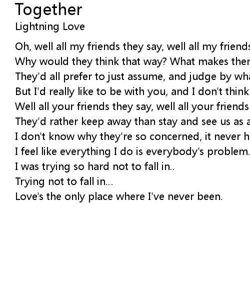 | Oh, well all my friends they say, well all my friends say we' re together. | |