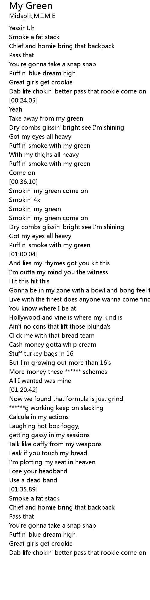 | [01:03.51] | Gonna be in my zone with a bowl and bong feel the difference |