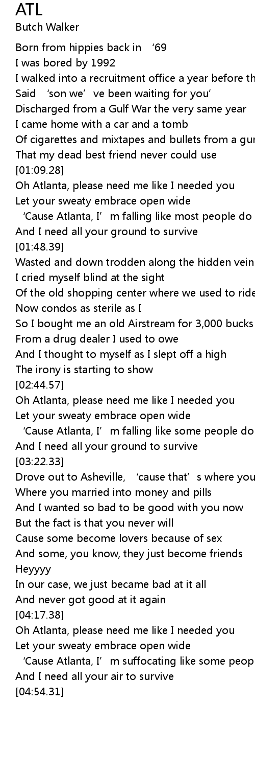 | [02:45.06] | Oh Atlanta, please need me like I needed you |