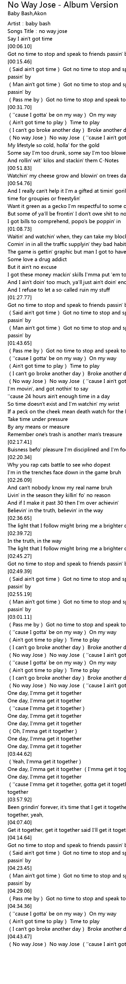 | [04:44.03] | (No way Jose) No way Jose (''cause I ain't got no time) |