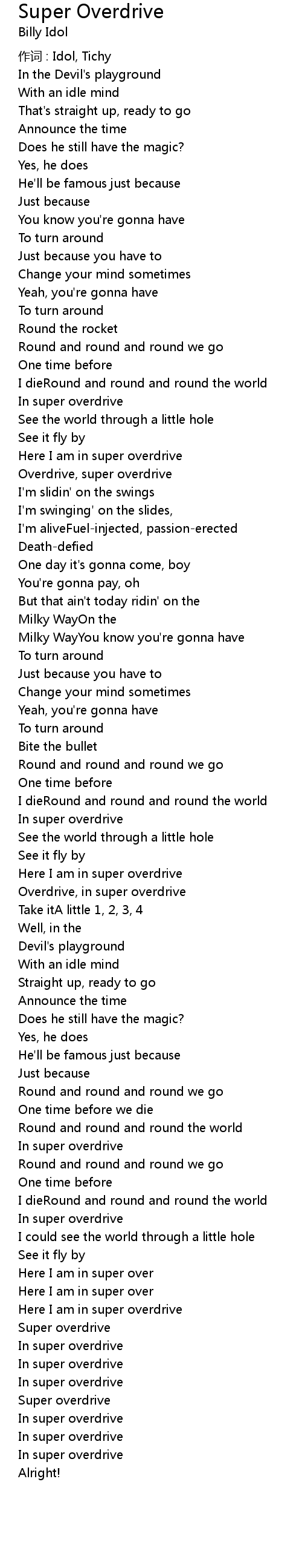 | 歌手 | Billy Idol |