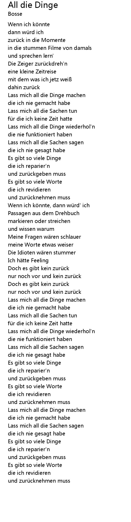 | Lass mich all die Dinge wiederhol' n | |