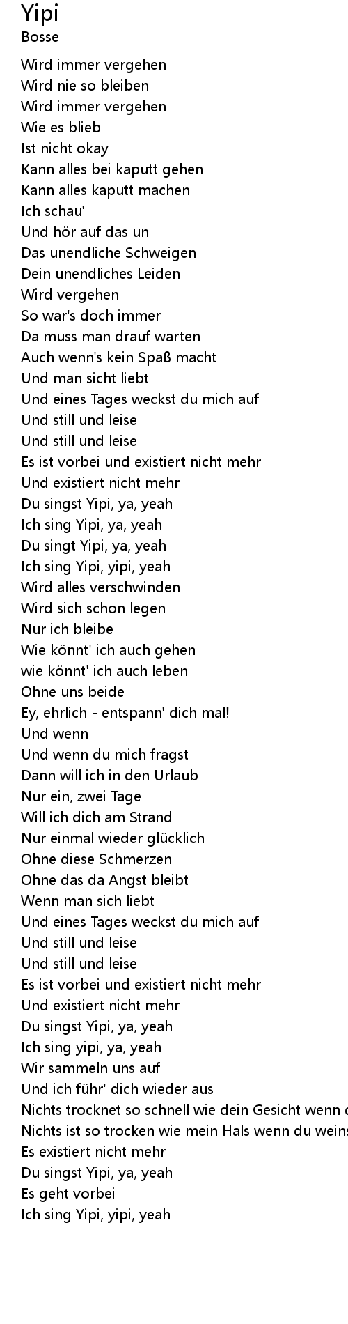 | Ich sing yipi, ya, yeah | |