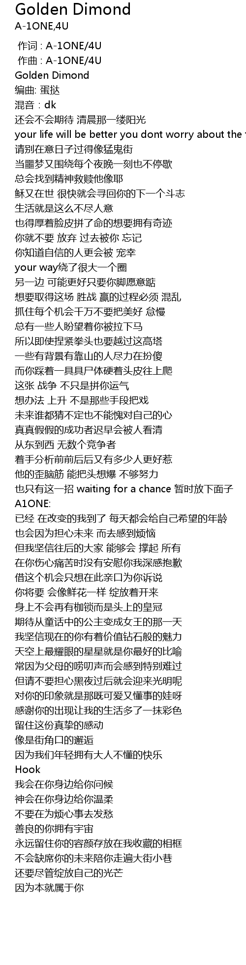 | [00:00.000] | 作词 : A-1ONE/4U |