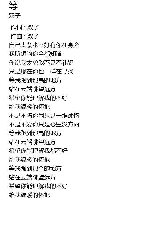 | [00:00.000] | 作词 : 双子 |