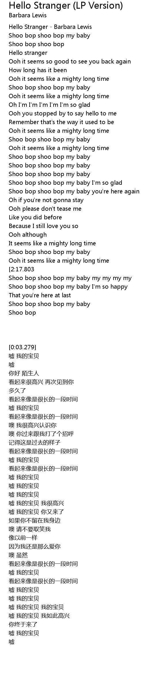 Hello Stranger - Barbara Lewis |