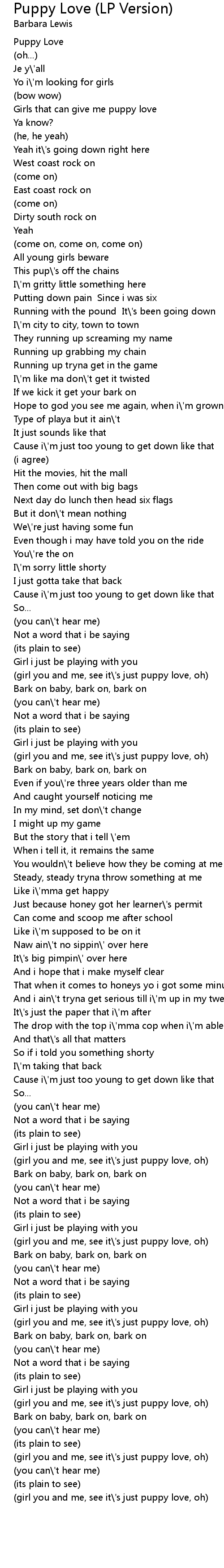 (girl you and me, see it\'s just puppy love, oh) |