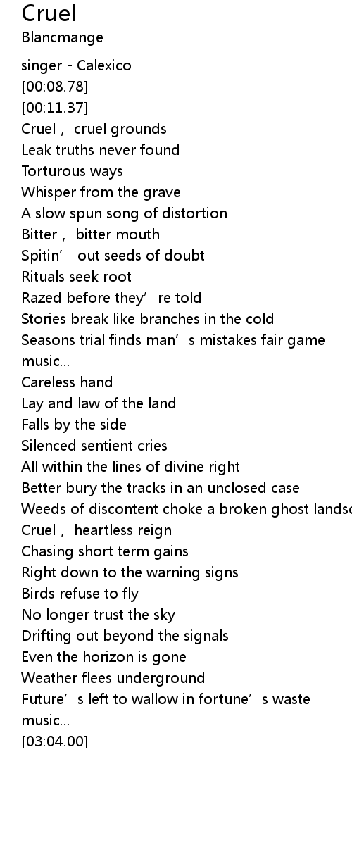 | [02:08.43] | Weeds of discontent choke a broken ghost landscape |