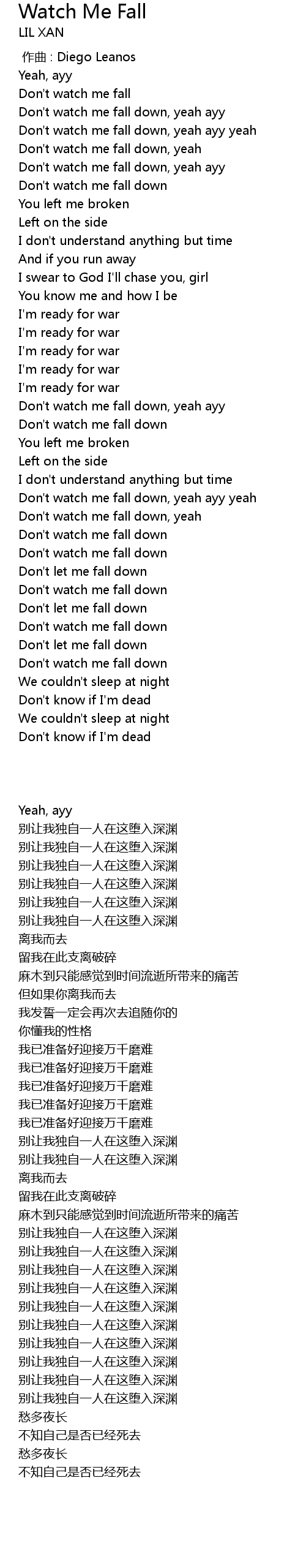 | [00:23.68] | Don' t watch me fall down, yeah ayy |