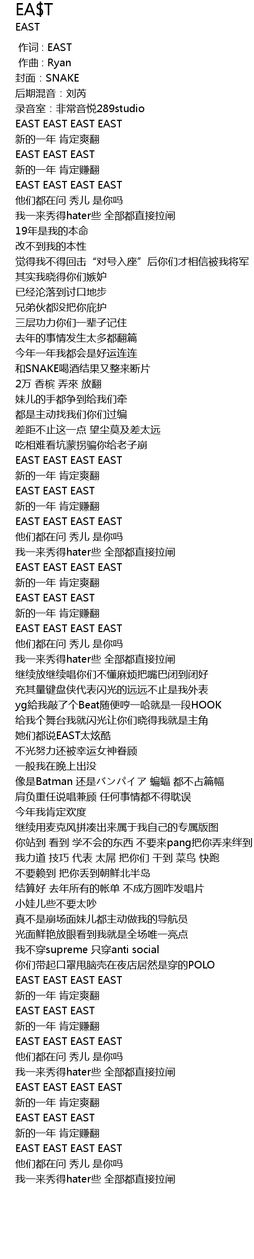 | [00:00.000] | 作词 : EAST |