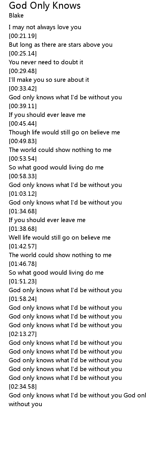 | [02:37.86] | God only knows what I'd be without you God only knows what I'd be without you |