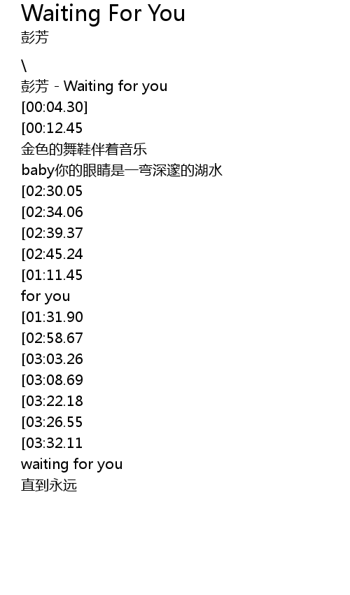 | [01:08.74][01:31.90][02:53.96][03:17.42][03:46.74][04:10.07] | i'm waiting for you |