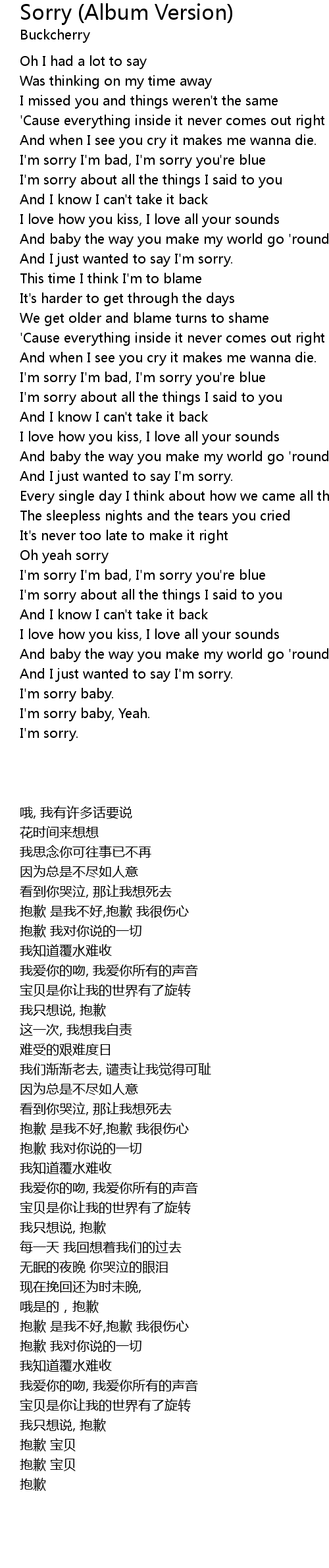 I'm sorry baby, Yeah. |