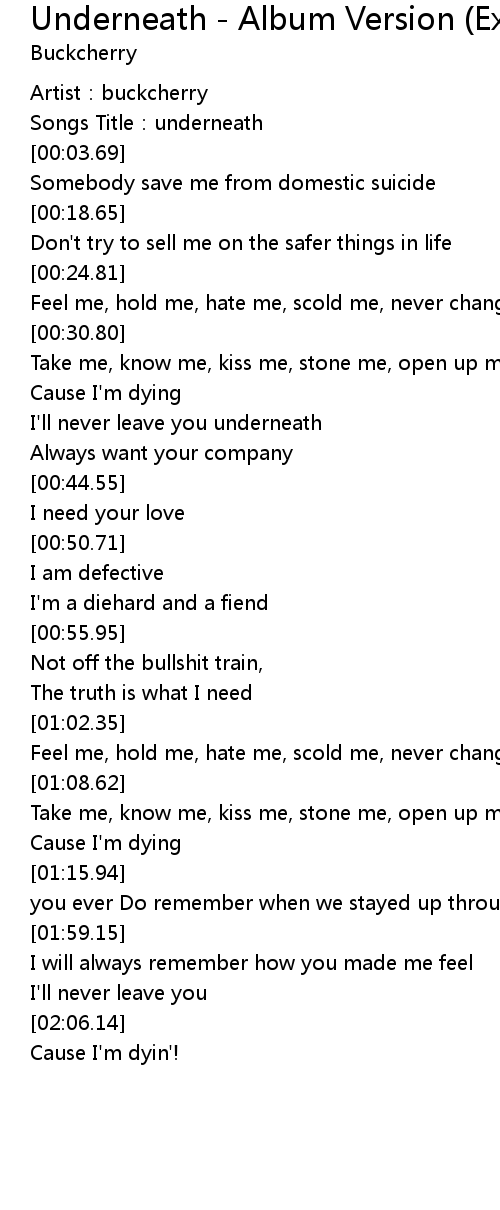 | [00:00.57] | Artist: buckcherry |