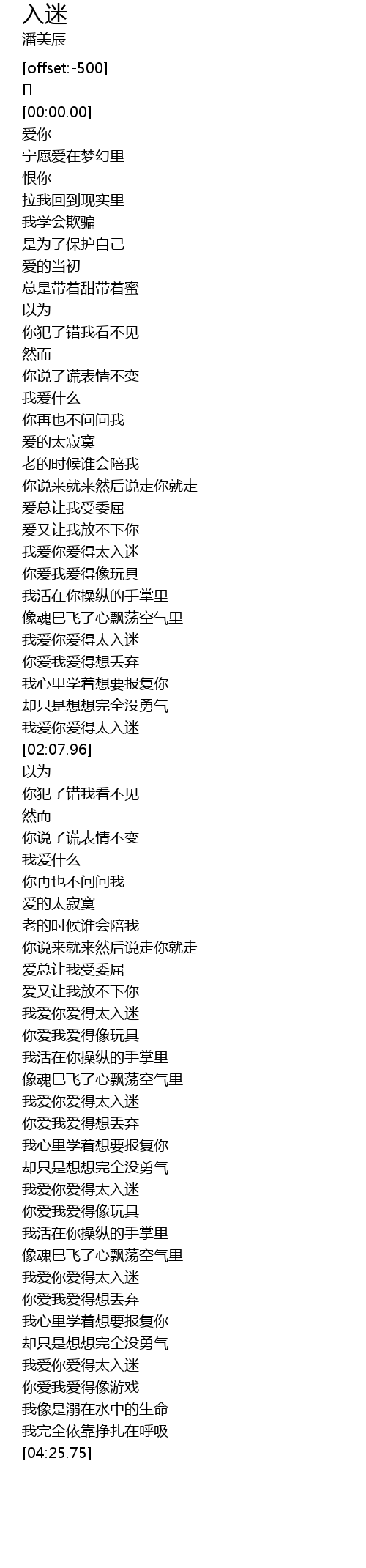 | [03:38.31] | wǒ ài nǐ ài dé tài rù mí |