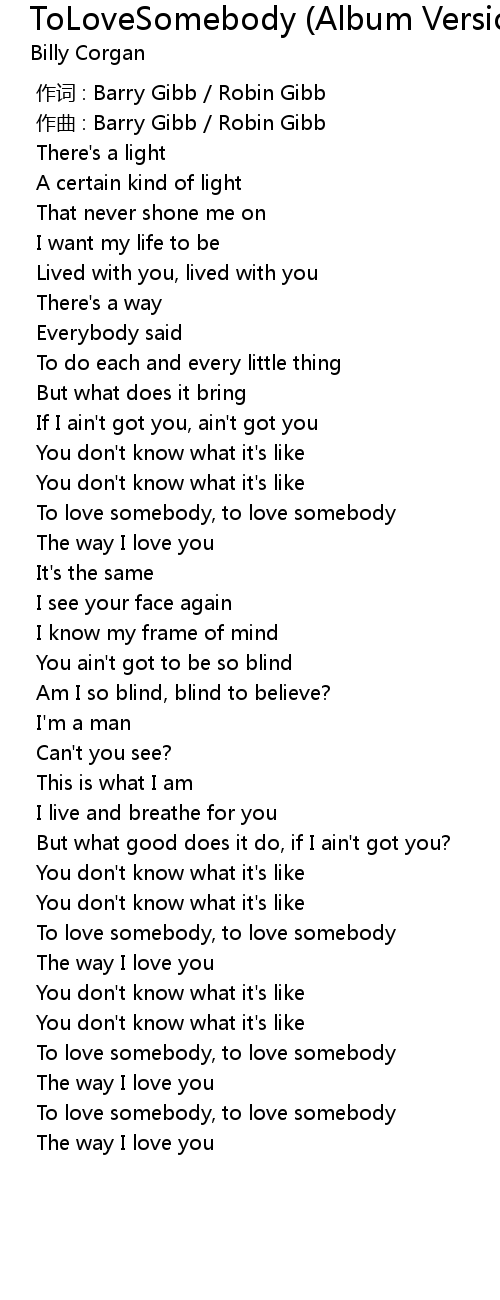 | 歌曲 | ToLoveSomebody (Album Version) |