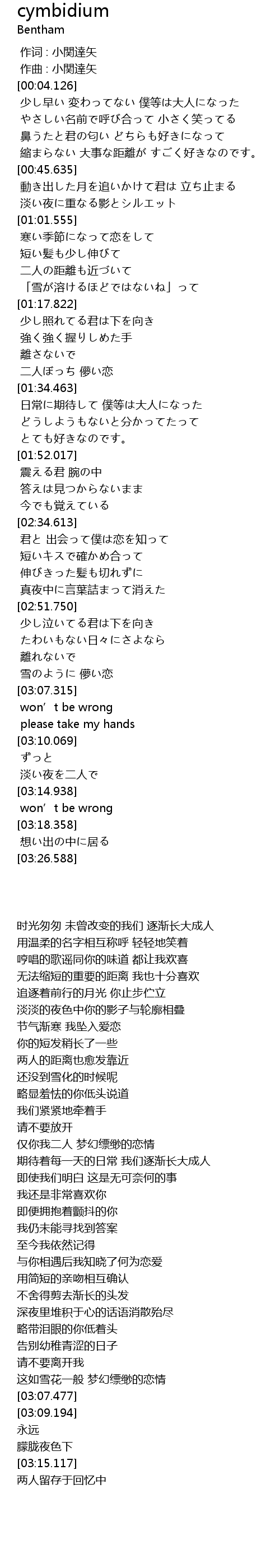 | [00:39.144] | 縮まらない 大事な距離が すごく好きなのです。 |